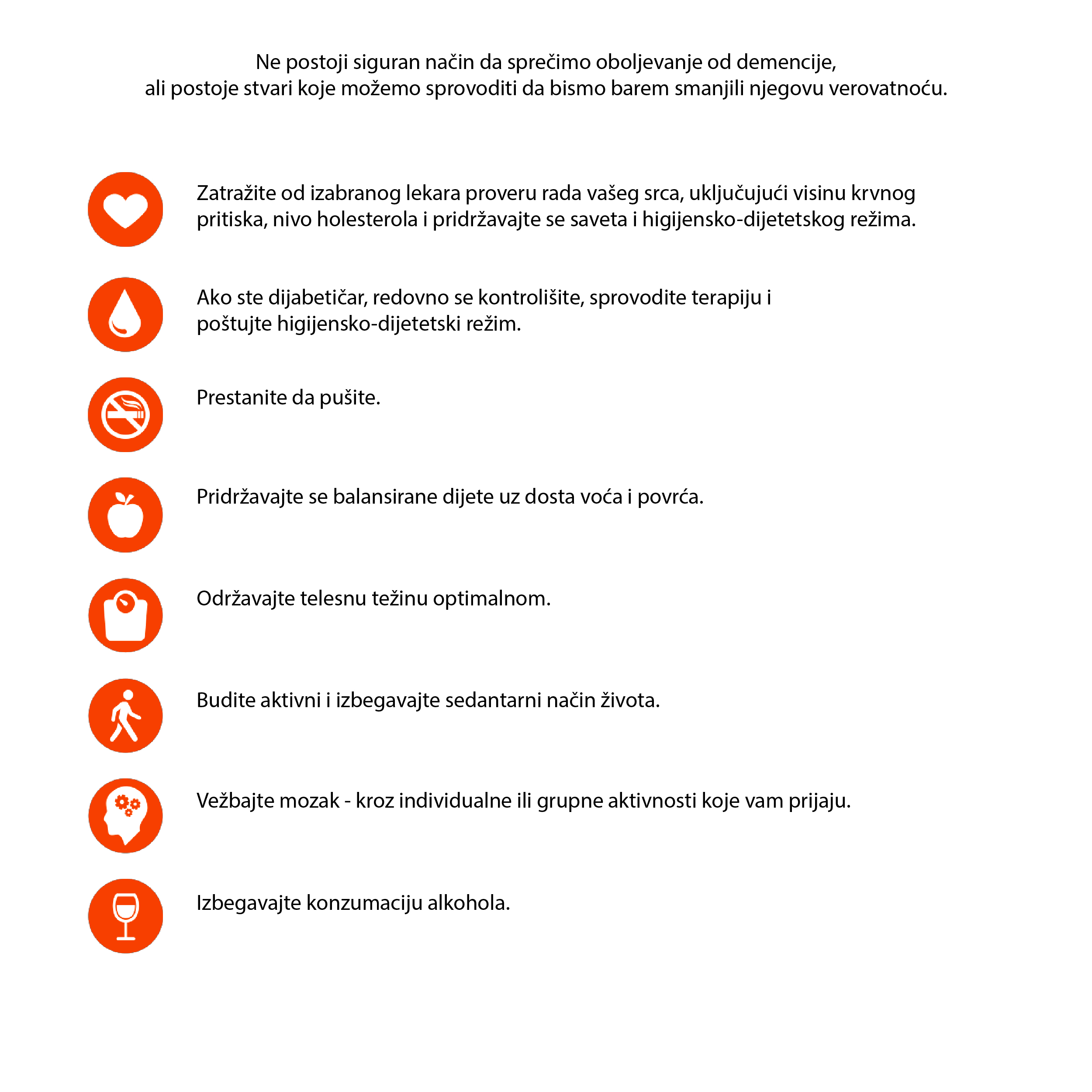 - 6. U kasnim stadijumima obezbediti obolelom narukvicu sa osnovnim podacima (ime, prezime, adresa, broj telefona osobe za kontakt).